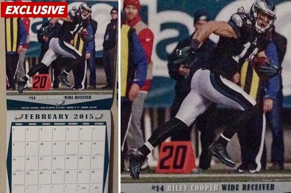 In an awkward instance of ironic timing, Philadelphia Eagles fans who turned to the February page of their 2015 team calendar were greeted with the sight of wide receiver Riley Cooper.