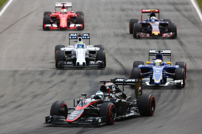 Handicapped by the limitations of McLaren's MP4-30, the two-time world champion had spent much of his first five races of 2015 racing alone, he and team-mate Jenson Button cut adrift from the pack as their employers troubleshoot the many problems with their new Honda power unit.