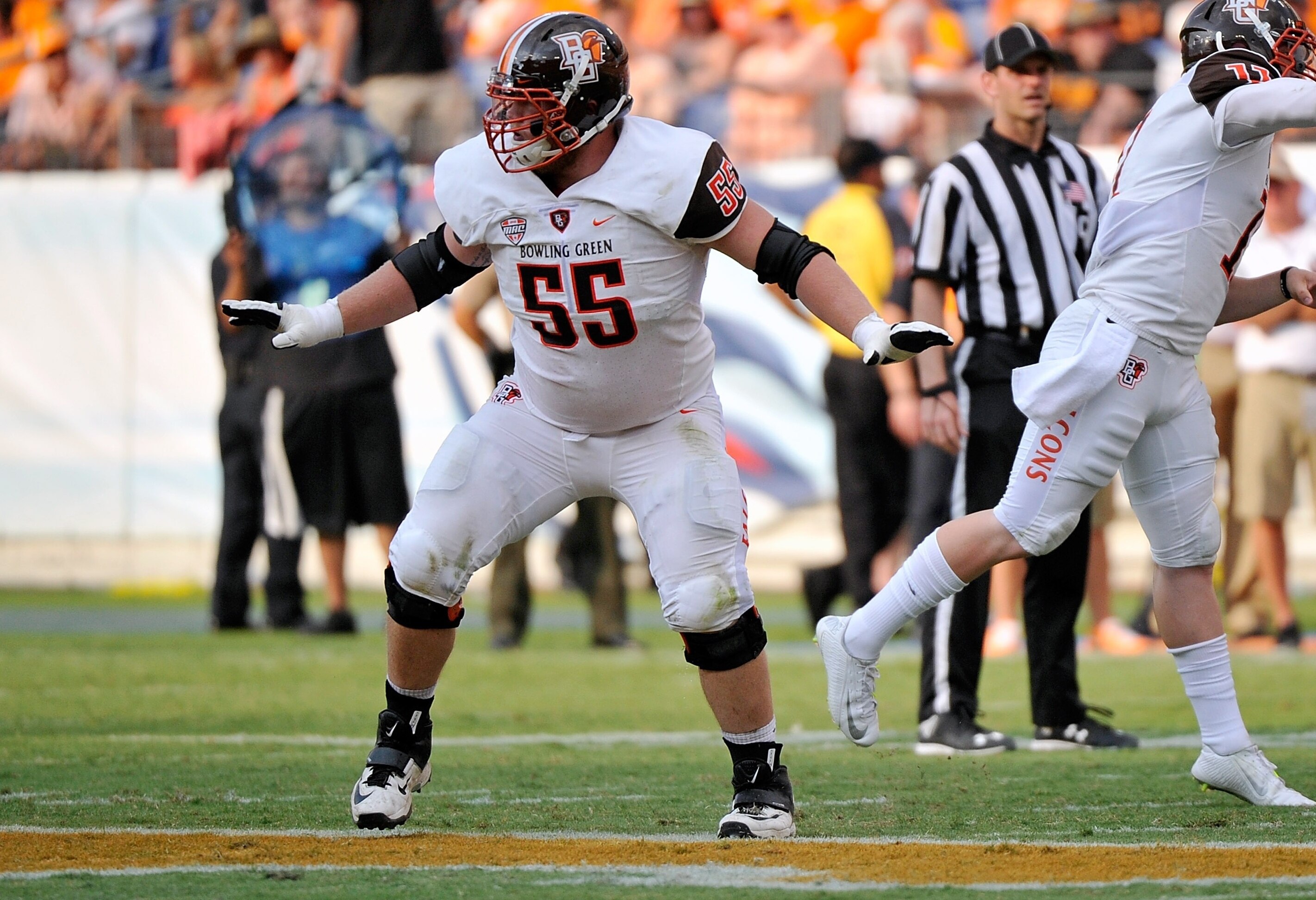 Alex Huettel has started all 54 games (and counting) of his Bowling Green career. This year's Falcons ranked No. 2 in the country in run blocking, per Football Outsiders' adjusted line yards, and Huettel was the biggest reason why. He's a mauler who can slide inside if necessary but does his best work as a pure run-blocking guard.