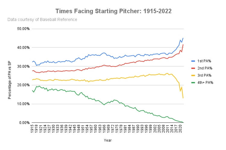 It used to be that hitters could count on getting three cracks at that day's starter, but that has been increasingly not the case in recent years and especially so now in 2022. As for why this matters, it's all there in the batting average splits for this season: