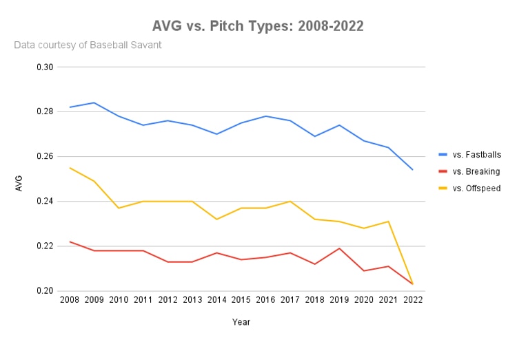 It's doubtful that anyone needs to be told that breaking balls and offspeed pitches are harder to hit than fastballs, but the numbers are worth beholding anyway: