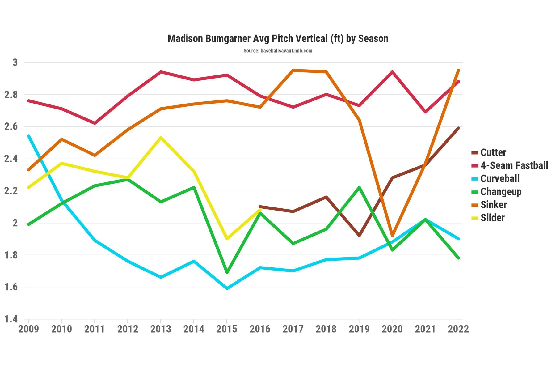 It helps that he's gone back to his roots as a sinkerballer, as the sinker is once again his primary pitch after he got away from it between 2019 and 2021. And it's working wonderfully in tandem with a changeup that's quietly among the game's nastiest pitches: