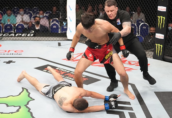 Maheshate, the first Chinese fighter to earn a UFC contract via Dana White's Contender Series, made his debut with the promotion in devastating PPV style via a one-punch KO of rugged veteran Steve Garcia in a scheduled three-rounder at lightweight.