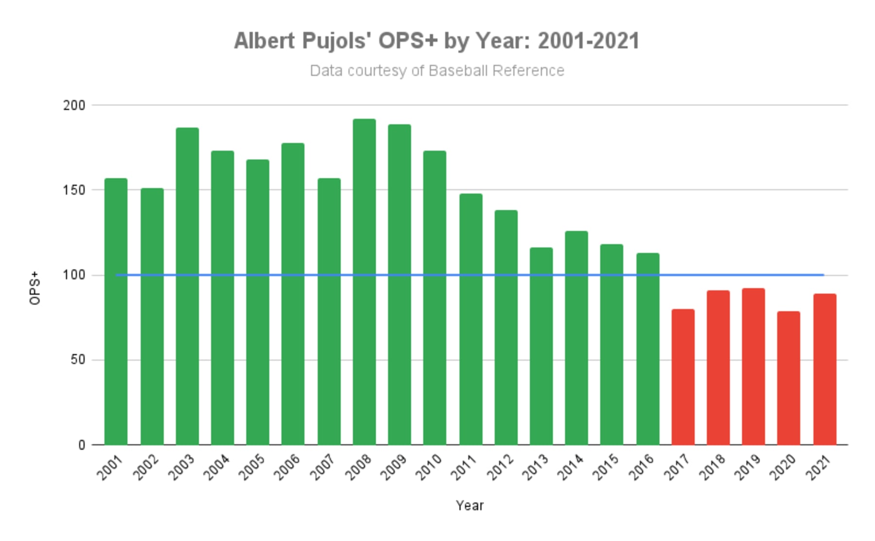 Pujols had initially fanned the good-vibe flames by going 7-for-18 with two home runs out of the gate in April, but his next 42 appearances saw him go just 18-for-108 with two long balls. By July 9, an all-too-familiar story had unfolded: Albert Pujols, Bad Major League Hitter.