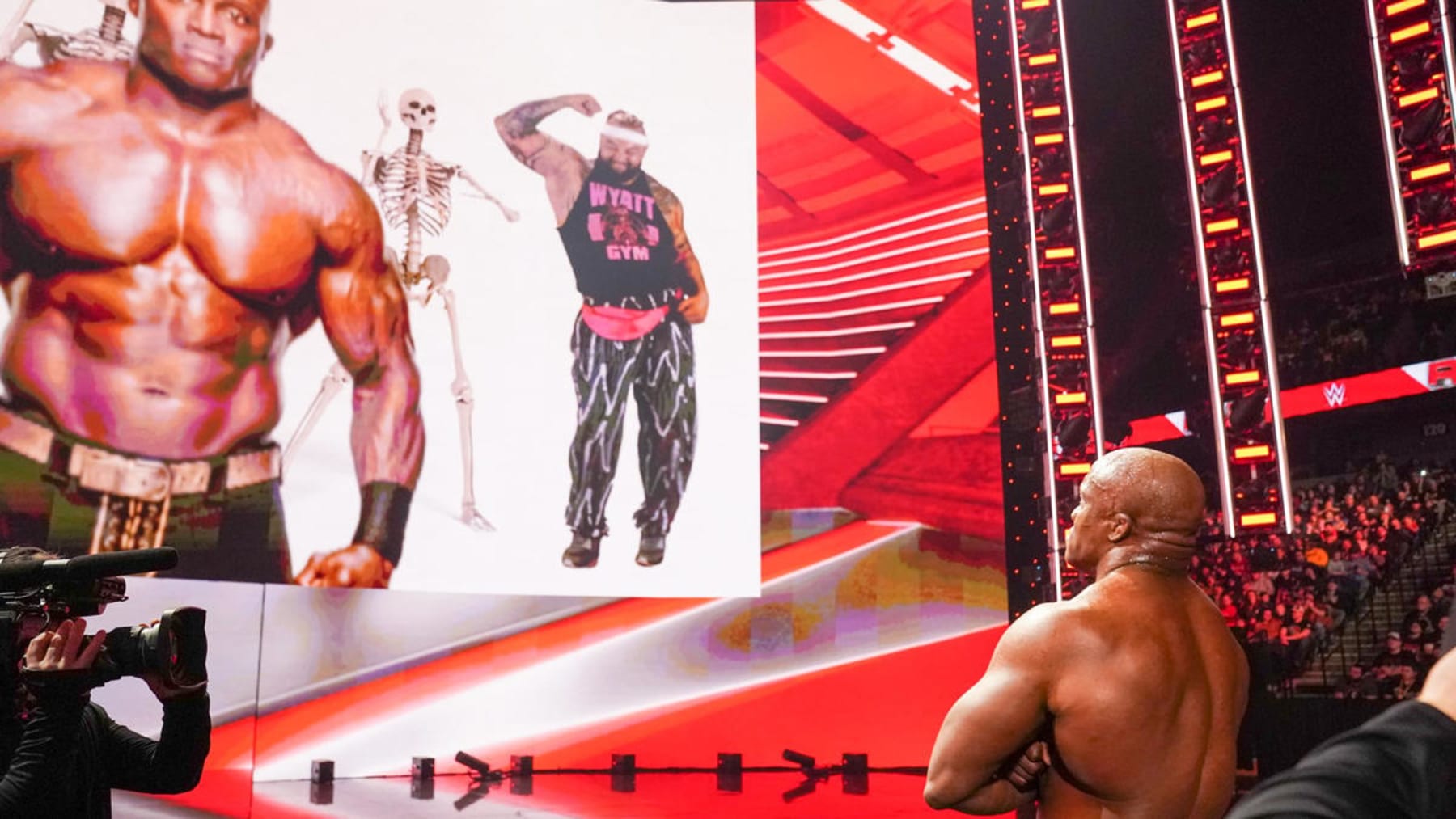 Instead of The Eater of Worlds, he got Uncle Howdy, who jumped him from behind. A scuffle ensued until the arena went dark. When the lights came back on, Howdy was gone, leaving Lashley dismayed.