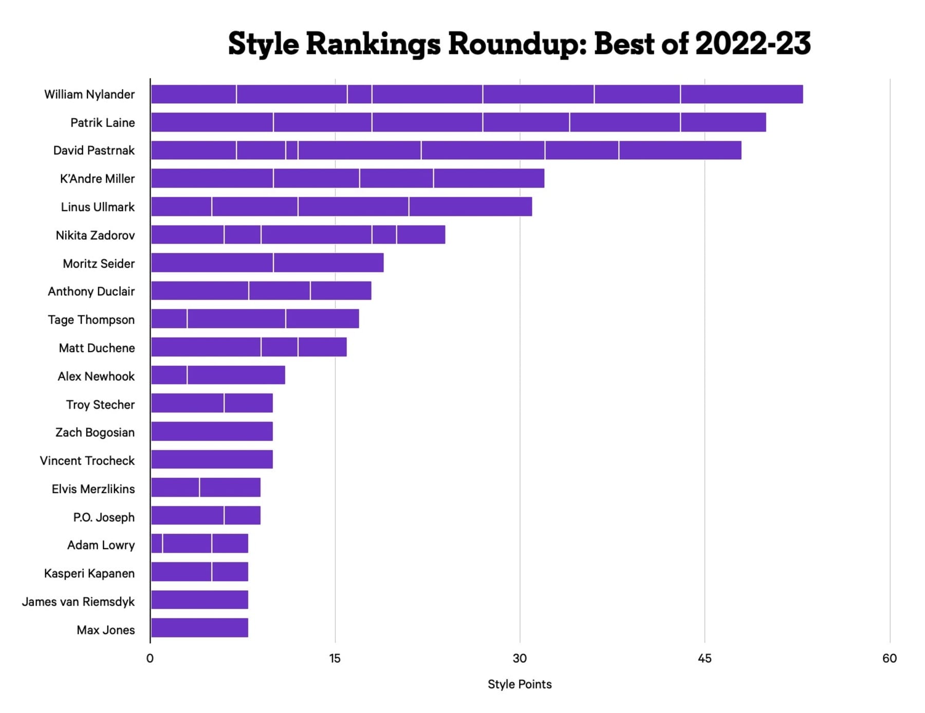 1. David Pastrňák still hold the most No. 1 rankings this season with three, so some could still consider him the style king and I'd agree.