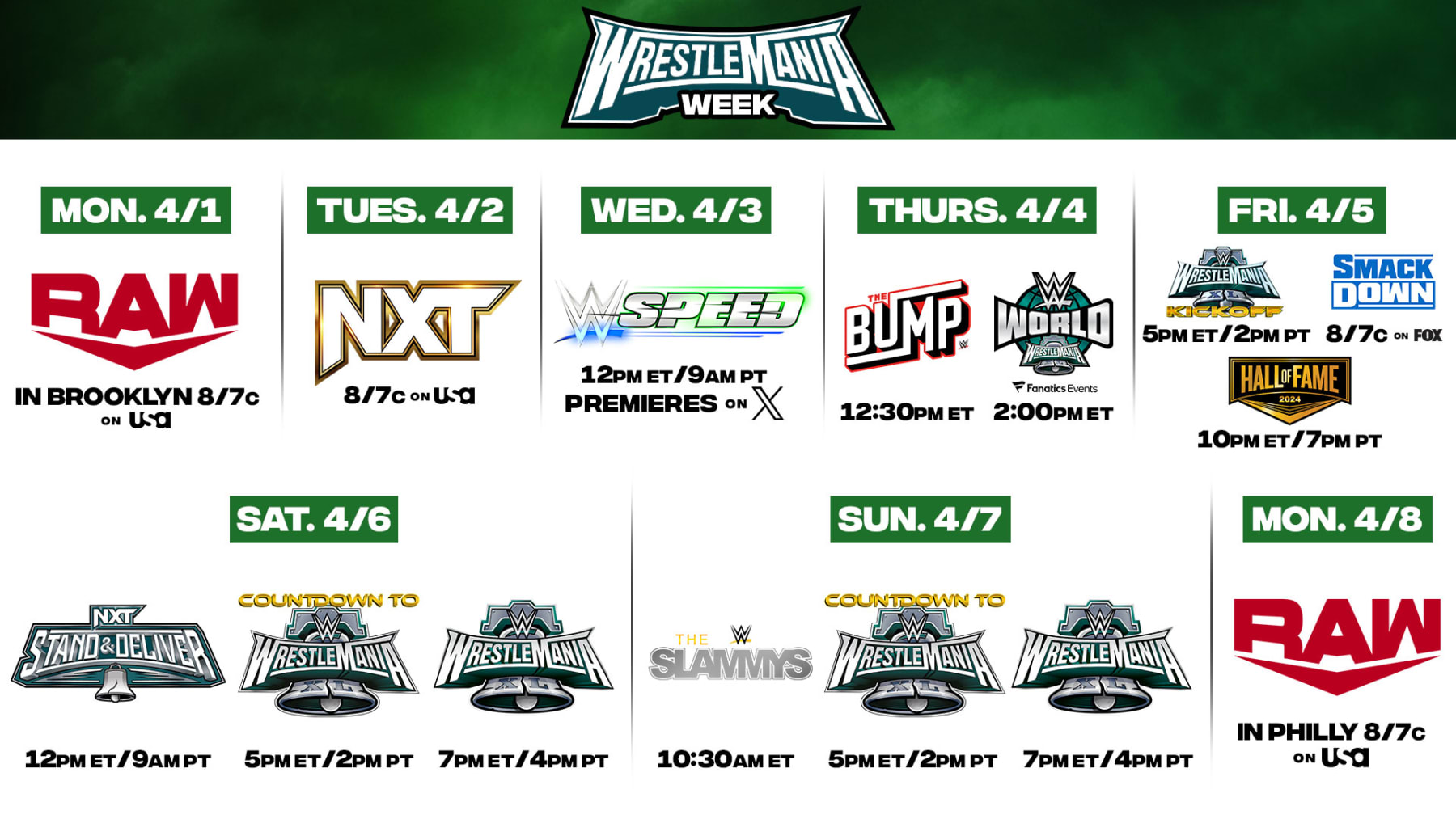 Countdown to Wrestlemania 40: 5:00 p.m. ET (Saturday and Sunday)