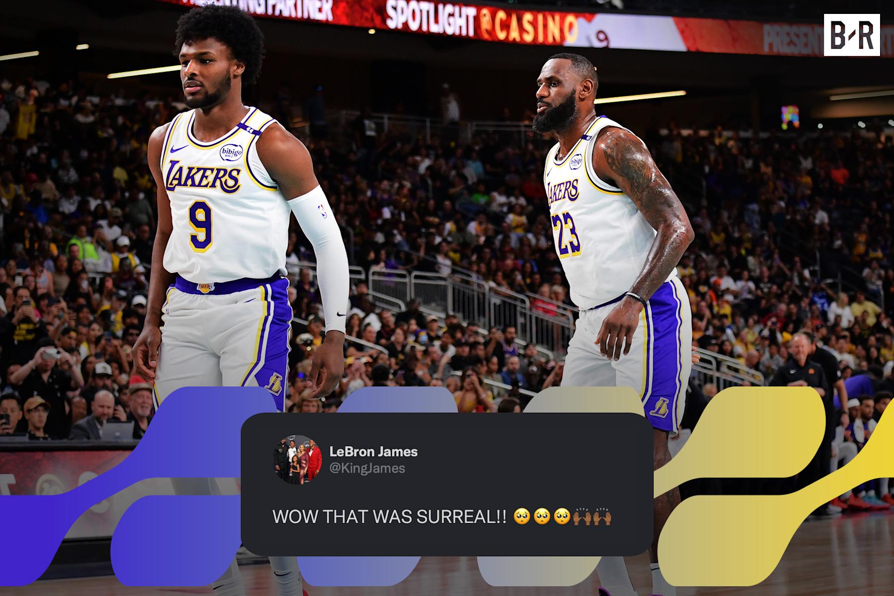 Los Angeles Lakers star LeBron James called it "surreal" to line up alongside side Bronny in Sunday's 118-114 preseason loss to the Phoenix Suns.