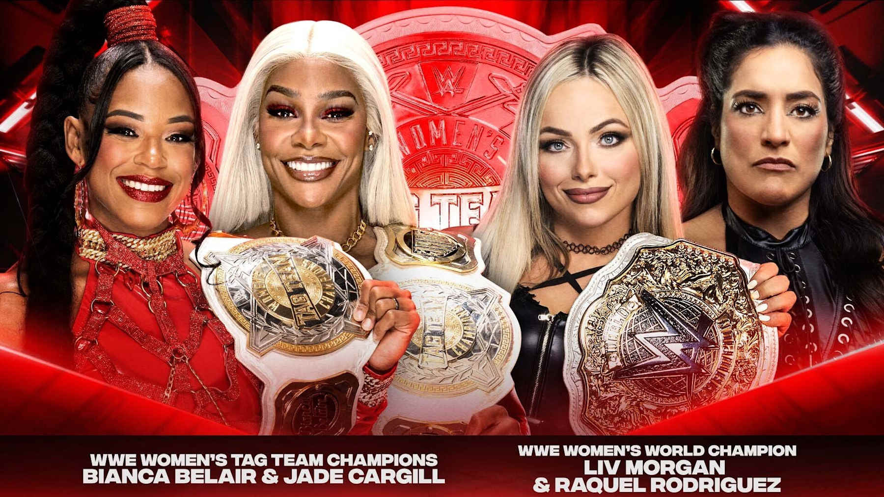 - Women's Tag Team Championship: Bianca Belair and Jade Cargill (c) vs. Liv Morgan and Raquel Rodriguez