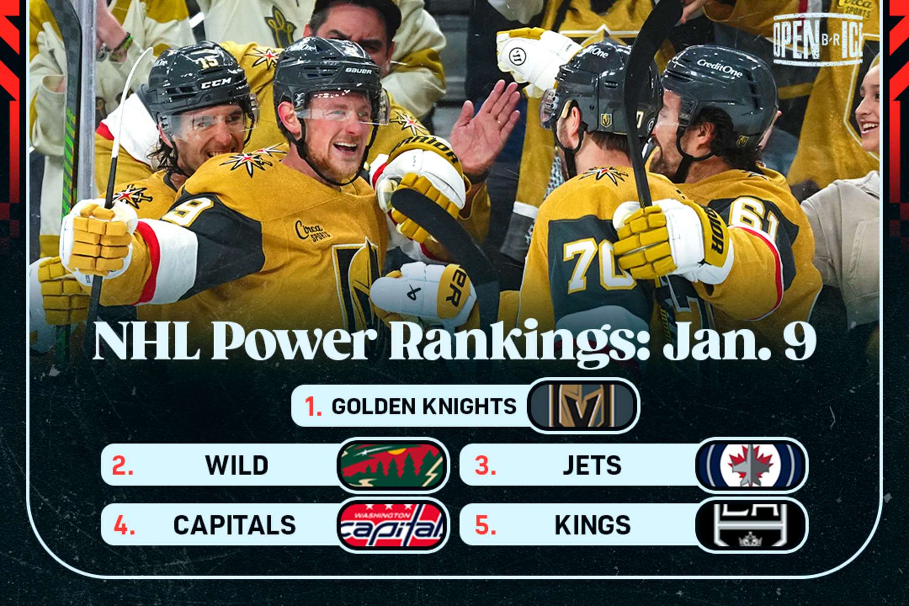 Four of the top five teams in this week's installment of our rankings reside in the West, led by the Vegas Golden Knights, who were a unanimous voting choice for the top spot after earning runners-up billing last week.