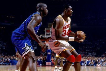 According to Basketball-Reference, Shaq and Hakeem squared off 20 times during the regular season throughout their respective careers. And the Diesel almost always came out on top, averaging 22.1 points per game on 54.4 percent shooting, vastly superior to Hakeem's 18.4 points per contest on 44.7 percent shooting.