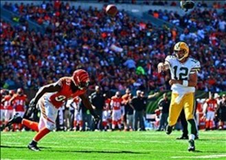 Quarterback Aaron Rodgers was once again pressured like crazy by the Cincinnati Bengals. He was sacked four times, had numerous passes batted down at the line of scrimmage and was forced into rushed passes over and over again.