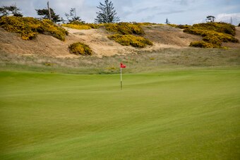 The 16th hole at Bandon Dunes is especially postcard-worthy: a tight par four that hugs the coastline, bringing water into play on every swing. The view from the tee box is nearly unmatched among the other three courses, but it's even better from the green, which sits on the edge of the bluff, the edge of the continent.