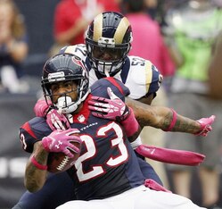 Soft-zone coverage kept the St. Louis Rams defensive backs from playing up to their potential in the early season before rookie safety T.J. McDonald—who was making plays in the box—fractured his leg. Things are looking better now that they’re playing more man coverage before halftime, but the Rams are only now 12th in pass defense.