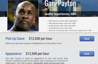 Some of the lesser known athletes are actually downright affordable, but others are completely unreasonable. Seriously—Gary Payton will come to your event for (up to) 60 minutes for $12,500…but if you want an autograph, that's gonna cost extra.