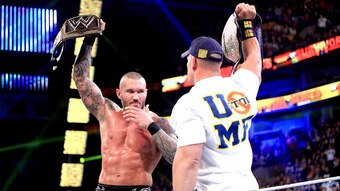 After Randy Orton's win over Big Show in the night's main event, John Cena's music played, and the World champion made his way to the ring. With title in hand, he stared down his longtime rival, who clutched his WWE title close to his chest.