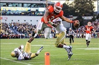 But seriously, Gurley took over in the second half and never looked back. The sophomore back rushed for 122 yards and three touchdowns, and he also had 36 receiving yards and one touchdown.