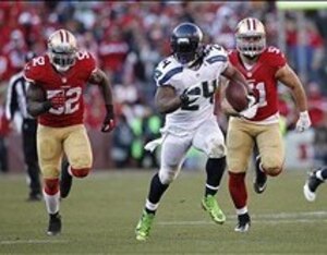 Bruce Irvin continues to adjust to being a linebacker and had one of his better games this season. His ability to set the edge against the run was tested often by the 49ers, and Irvin stood up to the challenge quite well.