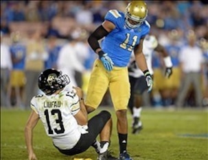 1.) Anthony Barr, UCLA: Barr has gone from a seldom-used fullback to a potential top-10 pick after making the switch to defense. The 6'4", 248-pounder racked up 10 sacks as a senior, and his speed off the edge should appeal to plenty of 3-4 teams.