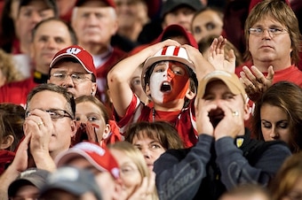 This Badgers fan has her mind blown in a good way, as Wisconsin upsets No. 1 ranked Ohio State in October 2010.