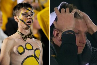 They were blown out in that game and again against Kansas State a week later in Morgantown. These two fans were stunned and they had no idea the free fall was just beginning.
