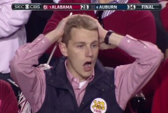 This Bama fan may be the national face of the Iron Bowl's stunning finish in 2013, but I think it's fair to say we all looked like that while watching Auburn run back that ill-conceived Alabama field goal as time expired.