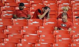Georgia nearly came back with an unlikely completion in the final seconds, but time expired before they could get off one last play. The minds of these fans were blown by Mark Richt's general incompetence.