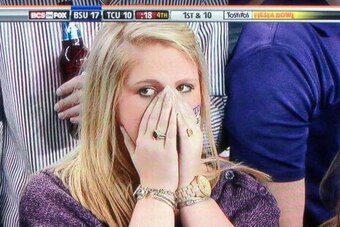 You can tell by the look on the face of this TCU fan, she obviously thought her Horned Frogs were going to be the ones leaving undefeated.