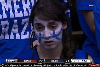 Seriously, look at this Blue Devils fan! She doesn't even look particularly sad, she just looks extremely stunned and kind of confused.