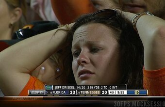 The Vols dropped a deuce against the Gators at home and their only wins the rest of the season came against Akron, Troy and Kentucky. This is a Vols fan the minute she realized her entire house was built on quicksand.