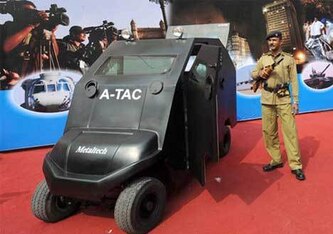 Seeing that a golf cart is sturdy enough to withstand your drunk playing partners crashing into a tree without serious damage, the Indian special forces have decided that one was strong enough to hold up in case of an unexpected attack.