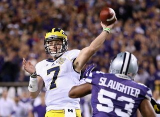 Good quarterbacks develop a sense of feeling pressure and how to move in the pocket, accordingly. Morris had the ball knocked away when a Kansas State defender ran him down from behind—a difficult play for any quarterback to defend against. The Michigan offensive line blocked well for the freshman quarterback—a luxury Devin Gardner lacked for much of the season. Morris needs to move within the pocket and run the ball when the opportunity presents itself.