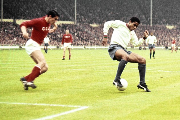 Eusebio's Benfica were up against the might of Ferenc Puskas' Real Madrid. It was the Hungarian great who looked set to steal the show, with a first-half hat-trick to put his side 3-2 up at the break, but Eusebio won the match with two goals in the second half.