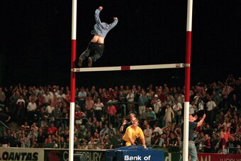 This photo was taken at a rugby match between the Reds and Crusaders back in 2000. There are no other details provided, but I think it’s fair to assume that fan is probably drunk.