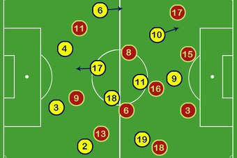 For example, Scolari used Luiz's comfort on the ball to avoid Spain's pressing during the 2013 Confederations Cup final, sliding him left to confuse Pedro in pursuit. This mimicked Bayern's use of Manuel Neuer for the same reason.