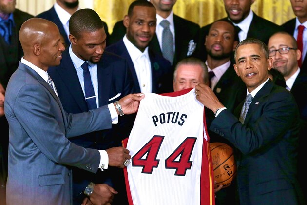 At White House, Obama Takes Friendly Jabs at Miami Heat, the Team of His Terms