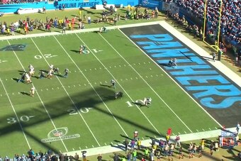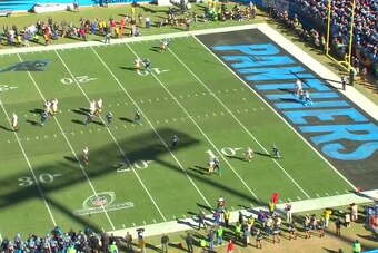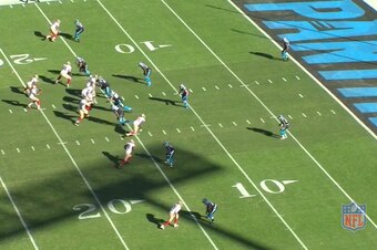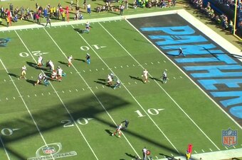 Luke Kuechly, sitting in a "Spy" zone, mirrors Kaepernick and takes away the possibility of the quarterback scrambling for a touchdown.