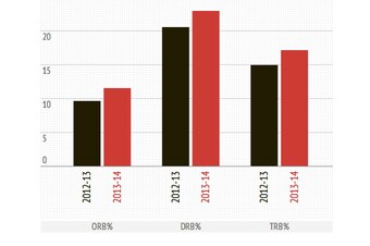 Below you can see how his rebounding percentages have trended during his two seasons in the NBA, per Basketball-Reference: