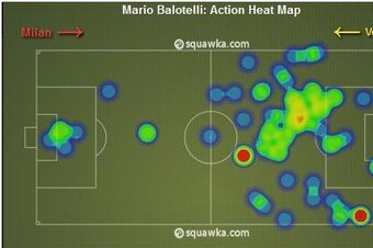 He has found the back of the net four times in four games since Allegri was sacked and was the star of the show as they saw off Hellas Verona last weekend. Scoring the only goal of the game from a penalty, Balotelli picked the Gialloblu defence apart, popping up all across the pitch and never allowing the opposition defenders to rest. His constant movement as he searched for the ball is shown in the heat map above, courtesy of the Squawka website.