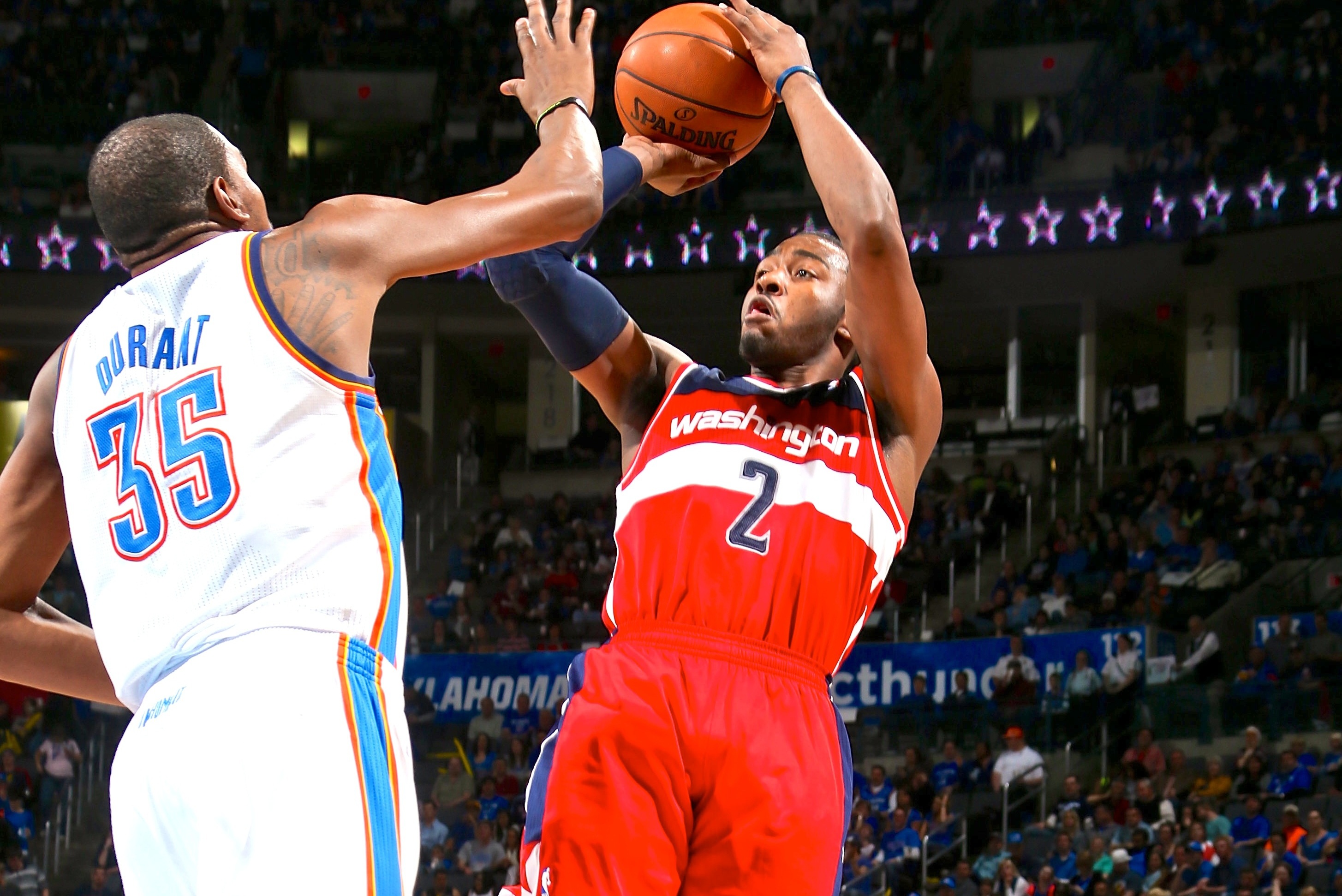 The Washington Wizards point guard is the latest player to start making pitches to Kevin Durant, who is still under contract with the Oklahoma City Thunder until the end of the 2015-16 season. You know, the one that comes after 2014-15, which can't start until the current 2013-14 campaign winds its way to a conclusion.