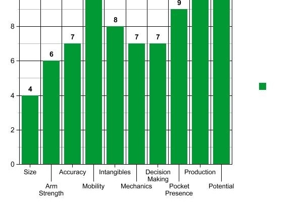 - Lack of size is a concern. Is listed at 6'0" and has to rely on his feet to create clear throwing lanes.