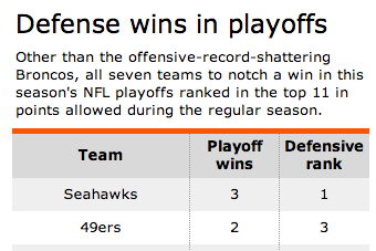 An AFC general manager noted that most of the teams that advanced in the early rounds of the playoffs did so with strong defensive efforts and sound running games. The Seahawks, 49ers, Patriots, Saints and Chargers all won in the postseason that way.