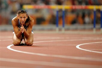 Jones first came onto the Olympic map back in Beijing in 2008 when she was the favorite to win gold in the 100-meter hurdles. She led the race up until the ninth of the ten hurdles, which she clipped. The field passed her by, and after the race, she pounded the track and choked back tears as the heartache raced over her.