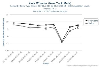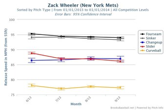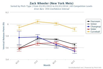 Wheeler steadily wore down over final two months of the 2013 season, evidenced by his declining vertical release point and slight dip in velocity: