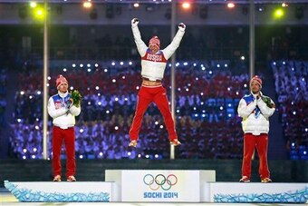 The Russians closed out the 2014 Olympics in style on Sunday, earning a gold medal in the four-man bobsled event and sweeping the podium in the men's cross-country 50-kilometer mass start.