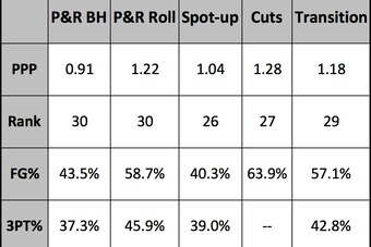 According to the video tracking service mySynergySports (subscription required), the Knicks have the NBA's worst defense against both pick-and-roll ball-handlers and pick-and-roll roll men. They also have a defense that ranks in the bottom five on a per-play basis against spot-ups and cuts, as well as in transition.