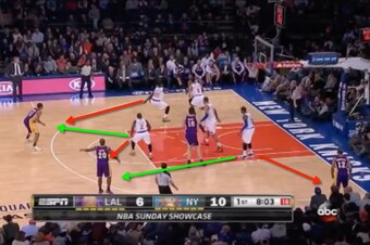 In each of the last two clips in the video above, all five Knicks cross half court on defense before the ball does, yet Lance Stephenson and Paul George each get directly to the rim without so much as a single Knick between them and two easy points.