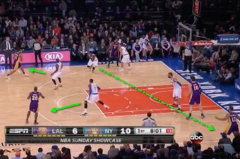The Knicks' defensive issues become magnified in transition, where everything is chaotic and helter-skelter to begin with. Much of New York's transition-defense problems stem from the fact that the team has multiple players who would rather complain about foul calls than get back on defense (I'm looking at you, Ray Felton, and you too, Carmelo Anthony), but they often just simply don't account for a man or two when marking up, instead committing multiple players to the man with the ball in his hands.