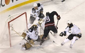 The layer of snow blanketing the Soldier Field ice surface made stick-handling and passing a challenge for both teams Saturday. However, the big guns on the Chicago side were able to overcome the conditions.