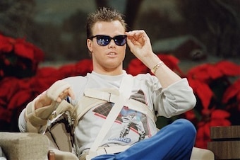 Jim McMahon does his Jim McMahon thing during a taping of Late Night with David Letterman. Dude had a headband for every occasion.